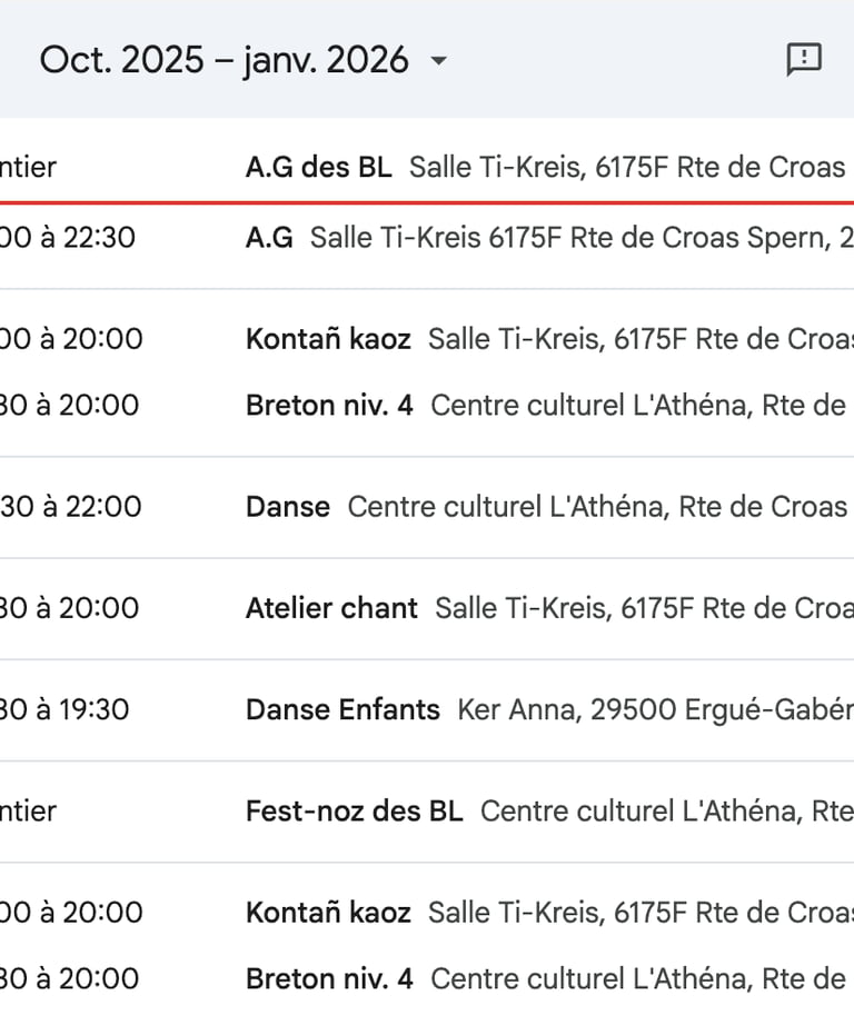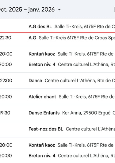 Informations pratiques sur nos ateliers de danse, chant et langue bretonne.