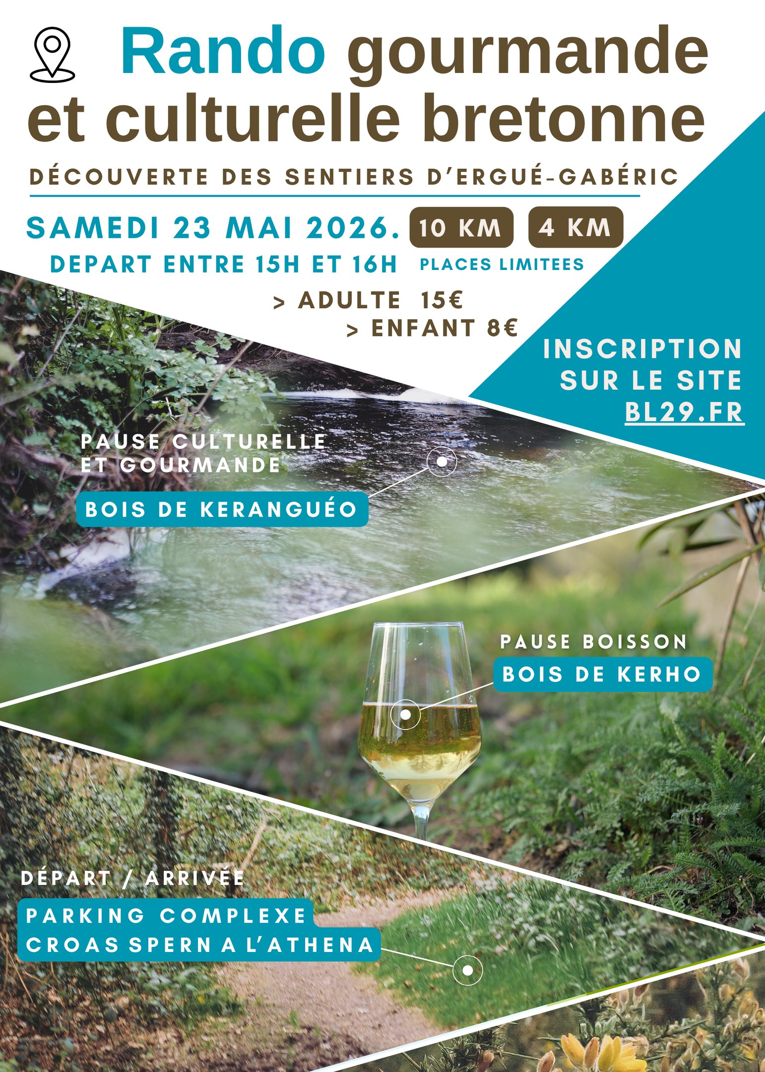 L'association organise une rando de 10 km à travers les bois et chemins d'Ergué-Gabéric avec une marche chantée, des sonneurs, des musiciens et à l'arrivée, galettes-saucisses ! On souhaite célébrer la Bretagne et la culture bretonne comme on l'aime : vivante, généreuse et partagée. Nous vous partageons ici le projet du programme :